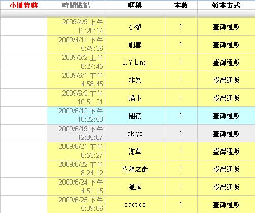 以下是尚未匯款的預訂者,8/7中午十二點前若沒有來信,視同放棄預定: